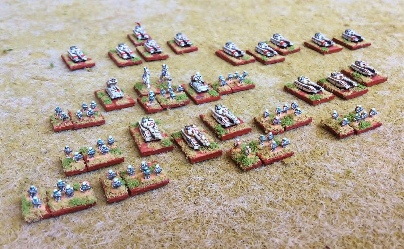 Three platoond of power armored infantry, a support platoon and five troops pf light tanks in support.