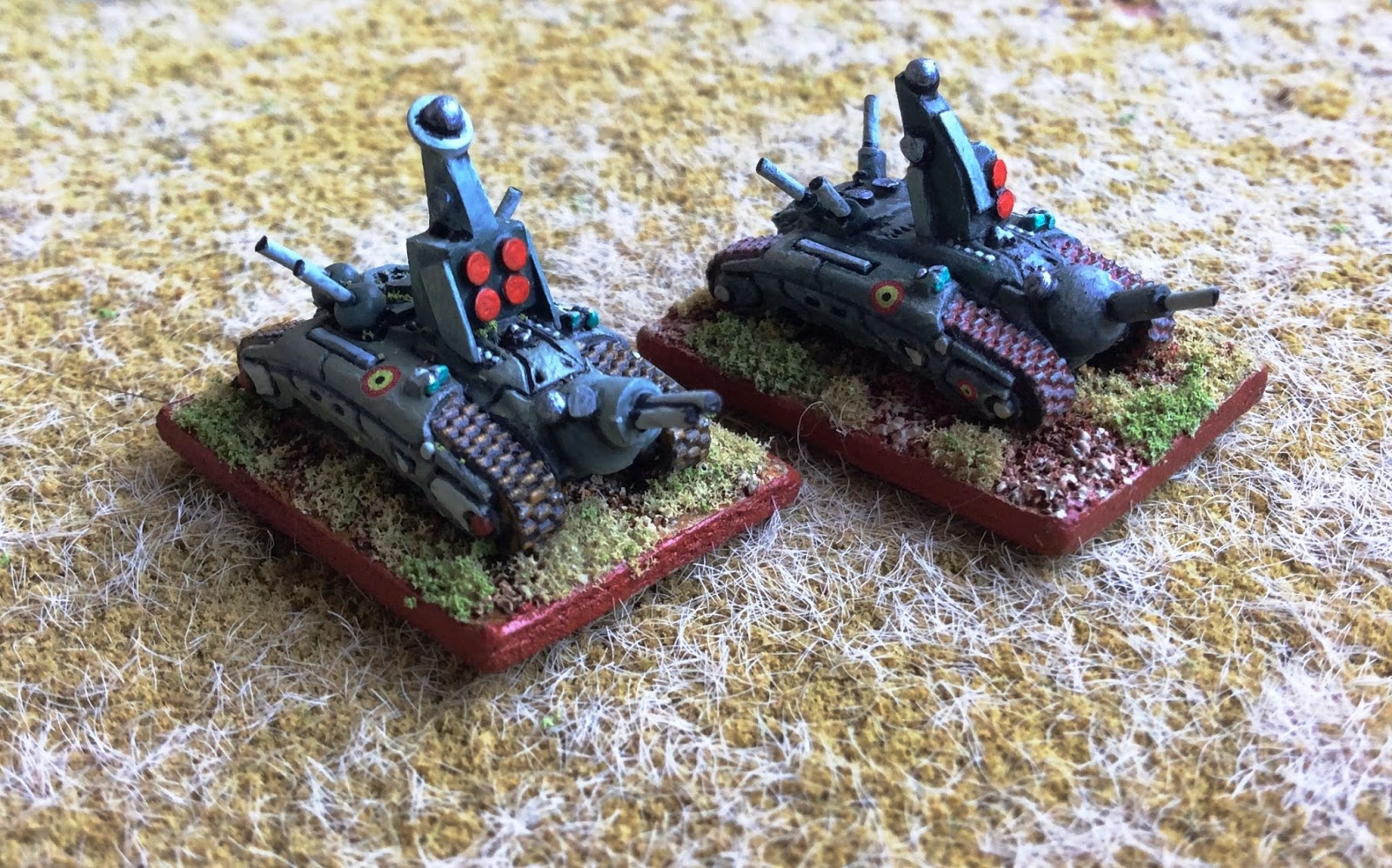 Here's my burgeoning Combine force for Ogre Miniatures in 3mm, featuring Mama Spank (a Mk IIIb) and her consort, Nervous George (a Mk III):