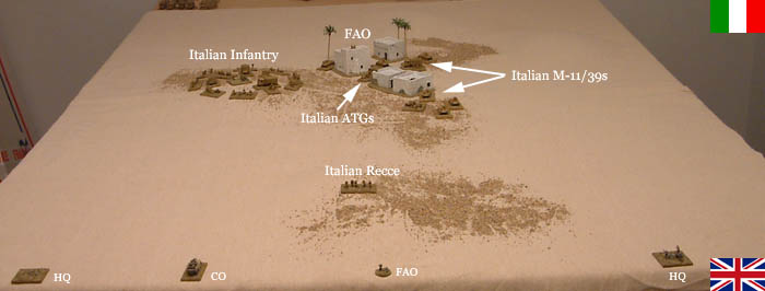 The Italian player (Pete) deployed his units on the table first, then the British player (Olaf) decided which table edge he would use as his baseline. He then deployed his command units along the table edge as his formations would use mobile deployment. The Italians were then able to pivot to face the enemy if they wished to do so (which they did!).