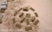 Outraged by the loss of his infantry, the British player called for the much needed support of the 25pdrs. Like clock-work (well this turn anyway!), they retalliated and caught the Italian infantry in the open. The Italians lost a mortar platoon, infantry platoon and the battalion ATG. The light tanks continued to harrass the infantry on the other flank, the Cruisers coming through the built-up area in an attempt to join in.