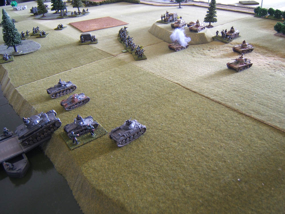 Dawn, on a morning during the first week of the German invasion of Poland. The leading elements of a German Panzer Division are about to commence an assault crossing of a Polish river.